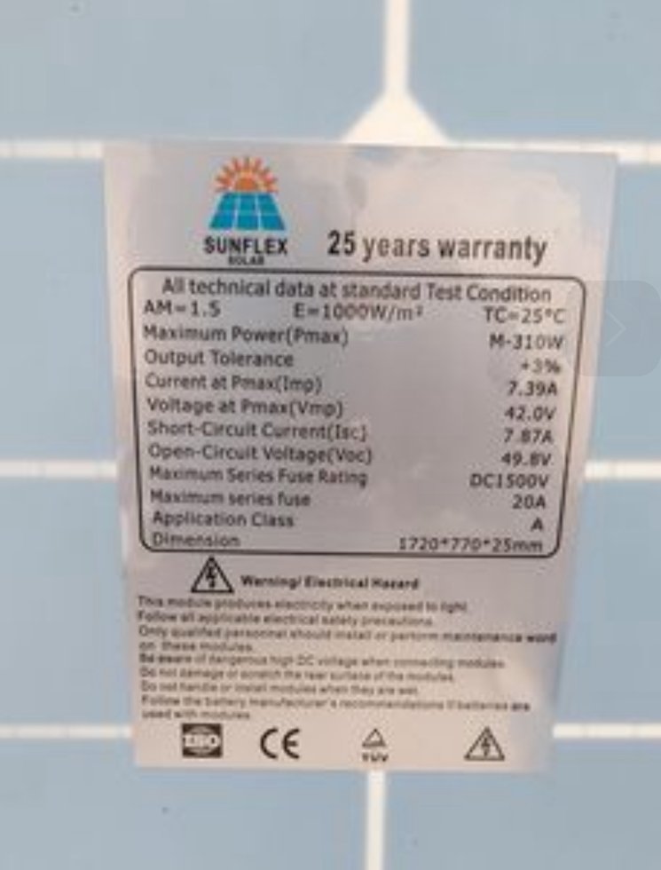 Maximum power (Pm): 310 Watts